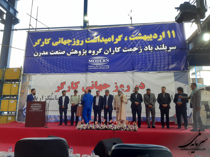مراسم گرامیداشت روز جهانی کار و کارگر با حضور کارمندان و مدیران گروه پژوهش صنعت مدرن و جمعی از مدیران و مسئولان منطقهای و کشوری همچون سیداحمد حسینی؛ رئیس اتحادیه تولیدکنندگان و فروشندگان قطعات یدکی خودرو و ماشینآلات تهران، حبیبی؛ معاون برنامهریزی و توسعه فرمانداری شهرستان شهریار، علی چنگی؛ مدیرعامل شرکت پژوهش صنعت مدرن، محسن زائری؛ رئیس اداره صمت شهرستان شهریار، ابراهیمی؛ رئیس سازمان تأمین اجتماعی شهریار، نجفی؛ عضو شورای شهر فردوسیه و سرگرد مرادیان؛ رئیس کلانتری فردوسیه، در دو سایت این مجموعه در شهریار و آشتیان برگزار شد.